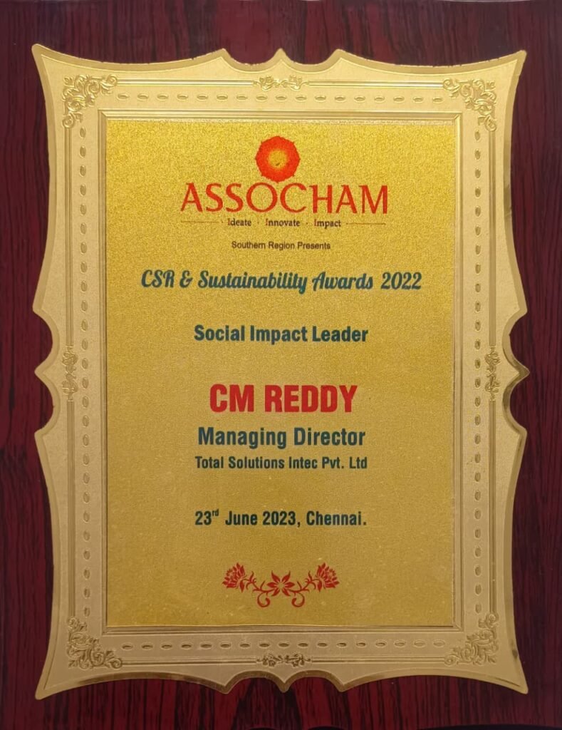 C Meganathan did many CSR Project, one of the Best is TSI School Building, for English Medium Classes, in Kannamangala Government School Premises and also did more than 1 Lakhs Tree Plantation